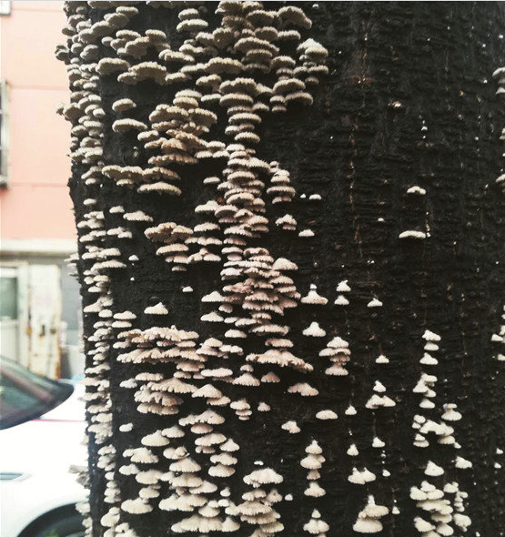 8月,虽已立秋,但合欢成长应仍然旺盛,合肥绿化养护笔者却发现在河北部分地区绿化带培育的合欢长势较弱,且树干上着生很多类似于“蘑菇”的菌体,许多市民还在评论,这些“蘑菇”是否可以食用。[2018-09-10]